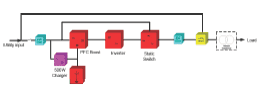 The backup series is composed by: Rectifier, Inverter, Static Switch, manual by-pass and Battery.